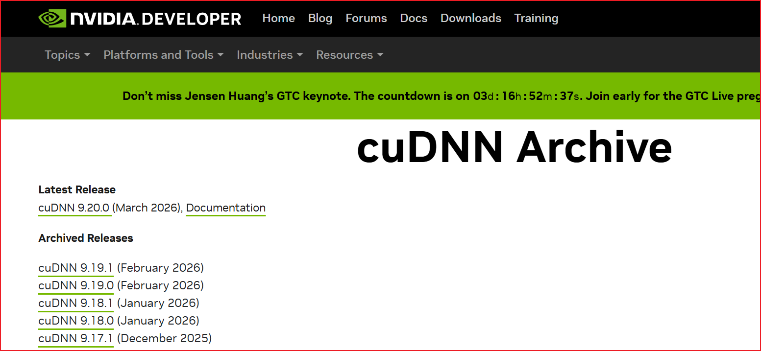 - (1)前往 【cuDNN Archive】,选择版本