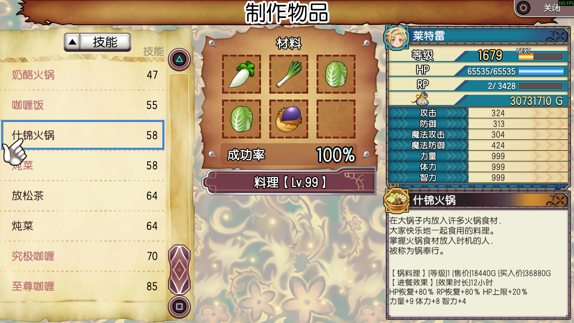 - 料理等级达到58级,改为制作锅料理什锦火锅