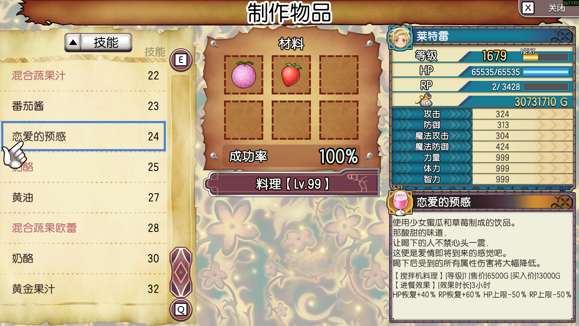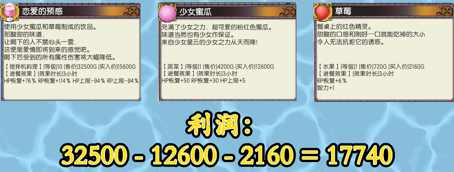 - 解锁了草莓和少女蜜瓜,可以边刷作物等级,边制作搅拌机料理恋爱的预感