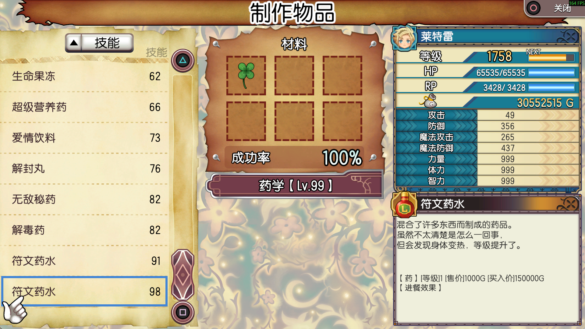 - 花店购买四叶草(需先出过货,否则花店刷不出),制药台制作符文药水(需调和等级90级以上),佩戴星型坠饰后,狂喝符文药水即可