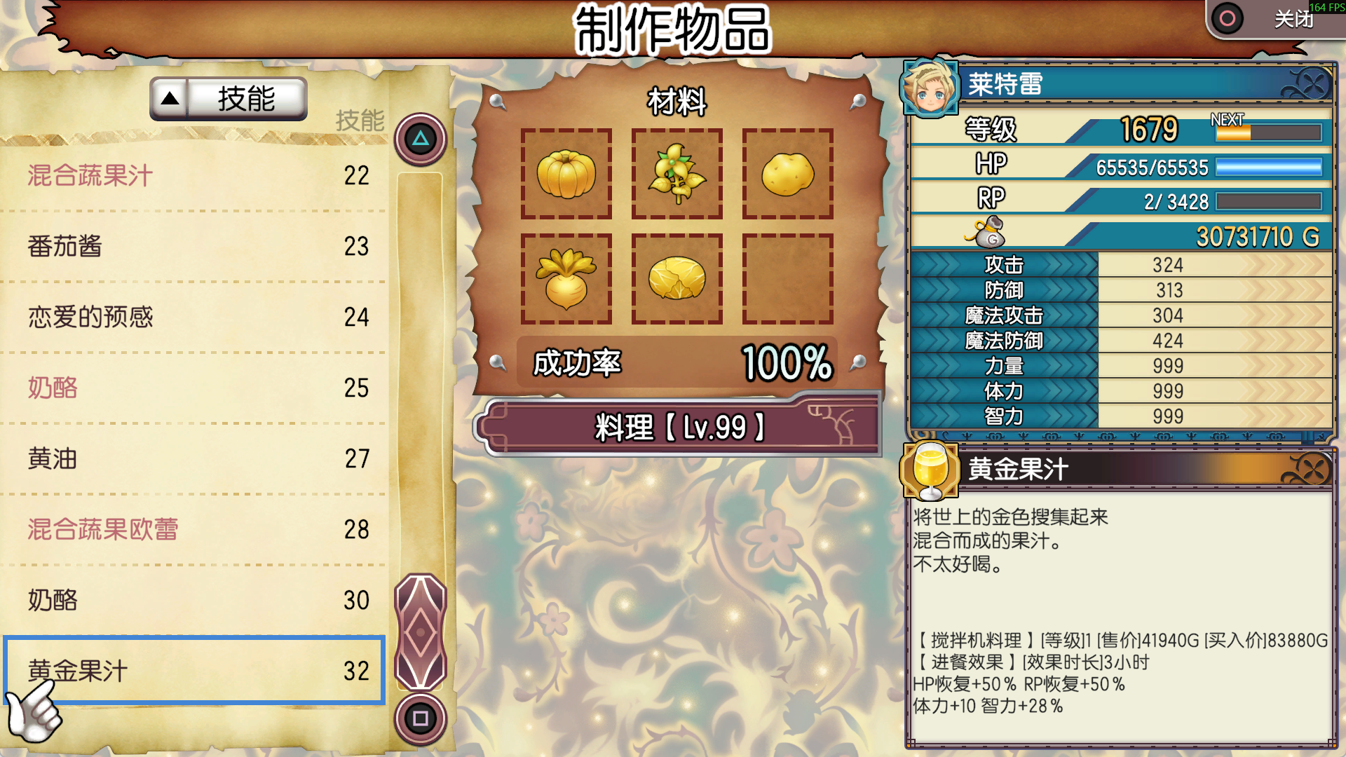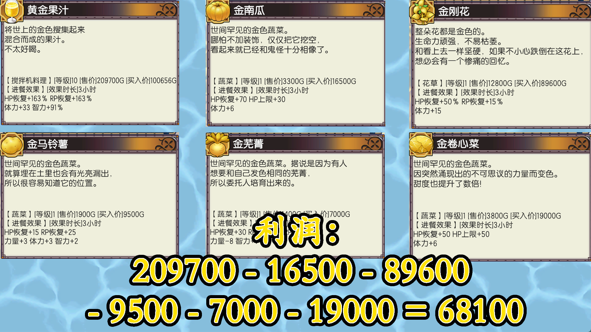 - 解锁了全部黄金作物后,改为制作搅拌机料理黄金果汁